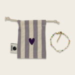 | Material Produkt | Material Stoffbeutel: 100% Baumwolle Natursteine Kunststoffperlen Glasperlen Textilband |