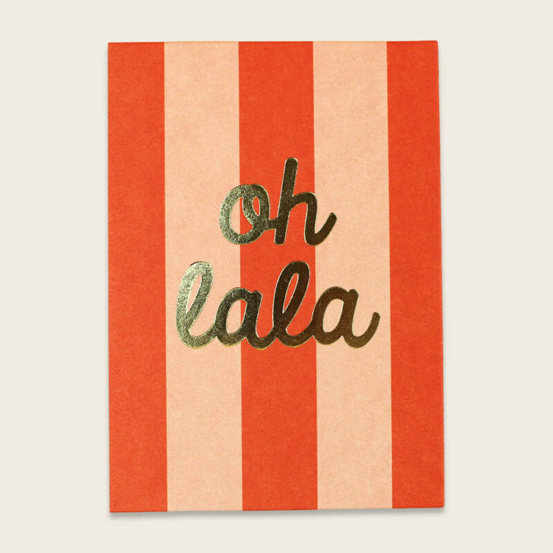 Postkarte „Ohlala“ – Streifen in Rot / Rosa