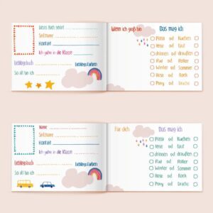 Dieses Heft von ava&yves im Din A5 Querformat bietet Platz für einen ganz besonderen Tag; den Tag der Einschulung.