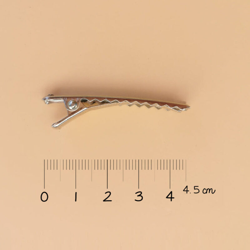 De 5 x 2 cm große Applikation ist sorgfältig auf einer 4 cm großen Krokodilklammer befestigt.