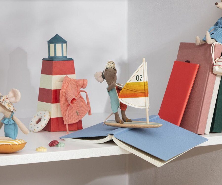 Sommer, Sonne – ab ans Meer! Es ist Urlaubszeit und deine Maus ist bereit für einen Tag am Strand mit dir. Der Mäuserich trägt einen Badeanzug und bringt sein Surfbrett mit – auf geht’s, ab in die Fluten!