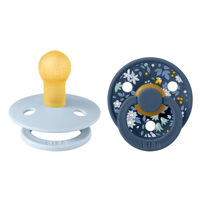 Die erste globale Druckkollektion von Bibs ist das Ergebnis aus der Zusammenarbeit mit Liberty London ist. Liberty inspiriert die Welt mit ihren wunderschönen Mustern schon seit 1875. Die exklusive Zusammenarbeit feiert mit ausgewählten Produkten beide Traditionsmarken. Der Colour Schnuller ist der Original BIBS Schnuller und seit über 40 Jahren auf dem Markt. Er besitzt das charakteristische runde BIBS-Schild mit drei Belüftungslöchern und einen runden BIBS-gravierten Griffring. Der runde Sauger fördert eine ähnliche Zungenplatzierung und Saugtechnik wie beim Stillen. Das runde, leichte Schild wölbt sich von der empfindlichen und sensitiven Haut um den Mund des Babys weg. So wird ein minimaler Kontakt mit der Nase und der Haut um den Mund des Babys gewährleistet.