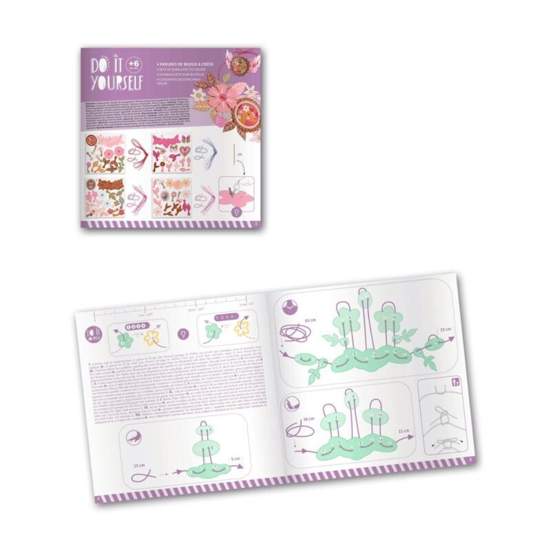 Dank goldener Glitzerelemente und verschiedenfarbiger elastischer Fäden wird jedes Schmuckstück zu einem echten Unikat. Die Bastelarbeit gelingt ganz leicht: Alle Teile sind vorgestanzt, nummeriert und mit Löchern versehen. Der elastische Faden wird einfach in der angegebenen Reihenfolge durch die Löcher gezogen – und die Nummern verschwinden beim Zusammensetzen ganz von selbst!