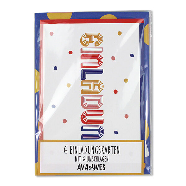 Einladungskarten „Einladung“ 6er Set – mit bunten Punkten