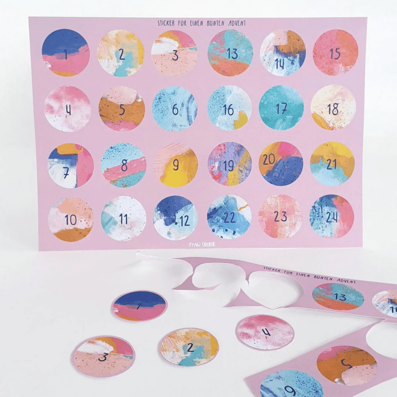 Die Adventskalender-Aufkleber von Frau Ottilie bringen eine extra Portion Bastelspaß vor der Adventszeit. Die Papieraufkleber im DIN A5 Format dürfen selbst ausgeschnitten werden. Die vielen kunterbunten Aufkleber-Motive verleihen deinem Adventskalender einen besonders frischen und individuellen Look!