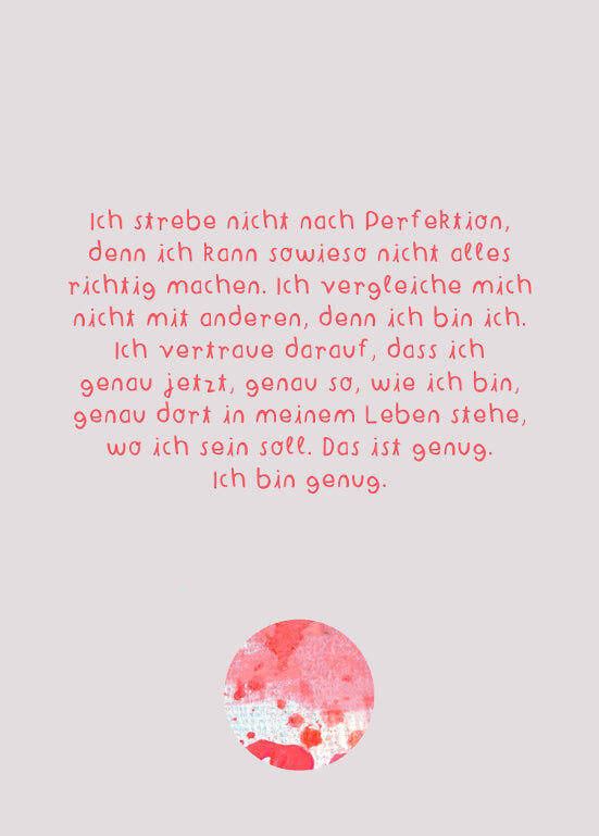 Das tut auf Dauer weder ihnen, noch ihren Liebsten gut. So sollen diese Affirmationenkarten Impulsen geben, ein Lächeln und viele Momente der Selbstfürsorge schenken. Die Karten sind eine Bereicherung, wie du es auf dieser Welt bist und verankern den Gedanken ‚Ich gebe mein Bestes und das ist gut genug`.