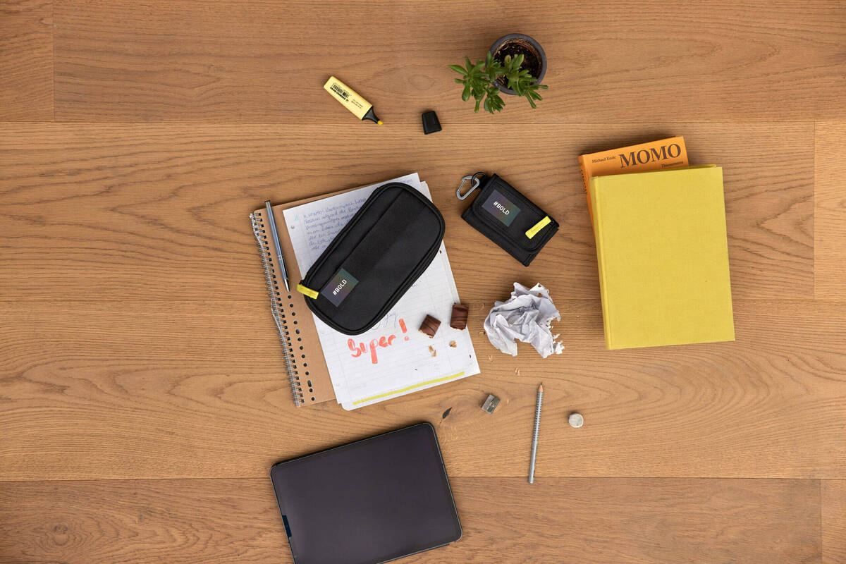 Damit aber noch nicht genug: Der Geldbeutel kann ganz easy am Schulrucksack befestigt werden. Oder du bringst an der Öse direkt deinen Schlüssel griffbereit an. Im Herstellungsprozess wurden auf tierische Bestandteile verzichtet und die Verwendung von Stoff aus recyceltem Polyester macht ihn robust wie nachhaltig. Das BOLD Wallet ist zudem PFC-frei.