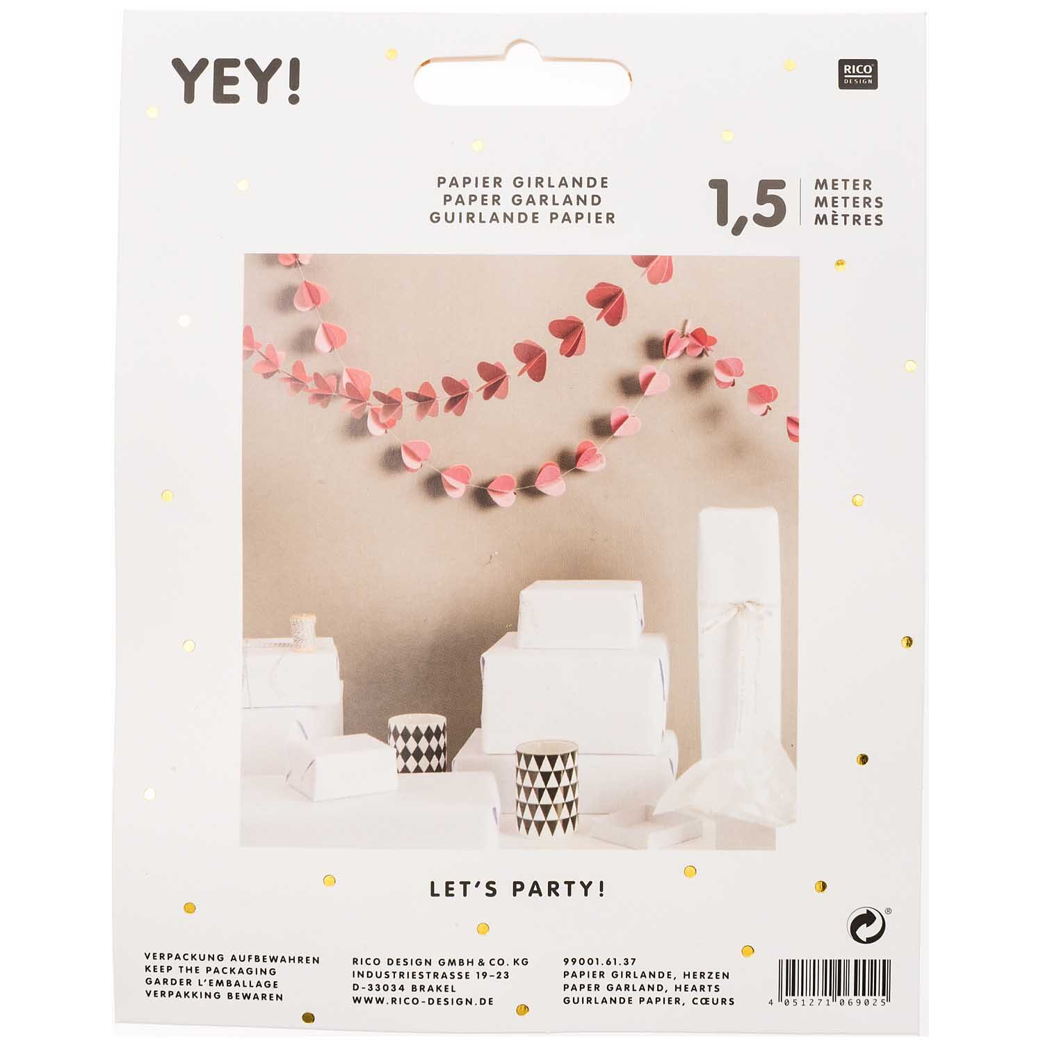 Girlande aus Papier „YEY! Let’s Party“ – Herzen