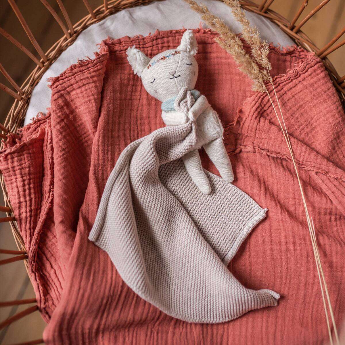 Superweiches Schnuffeltuch aus 100 % Bio-Baumwolle.