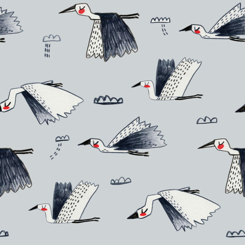Geduldg und friedlich schweben die Kraniche aus der Feder von Halfbird . Als Vogel des Glücks steht er ebenso für Wachsamkeit und Klugheit – so kann es wohl kaum einen besseren Begleiter geben. Perfekt also für dein nächstes Shirt oder gar als kuschlige Bettwäsche!