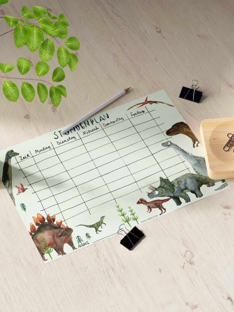 Dein Stundenplan für die Schule mit coolen handgezeichneten Illustrationen. Wir haben ihn extra beidseitig bedruckt, sodass du gleich zwei Stundenpläne in einem hast. Darin ist Platz für 8-9 Stunden. Und wir haben extra ein gutes Papier gewählt, welches du gut beschreiben kannst, aber falls du dich mal verschrieben hast, auch ohne Farbverluste radieren kannst.