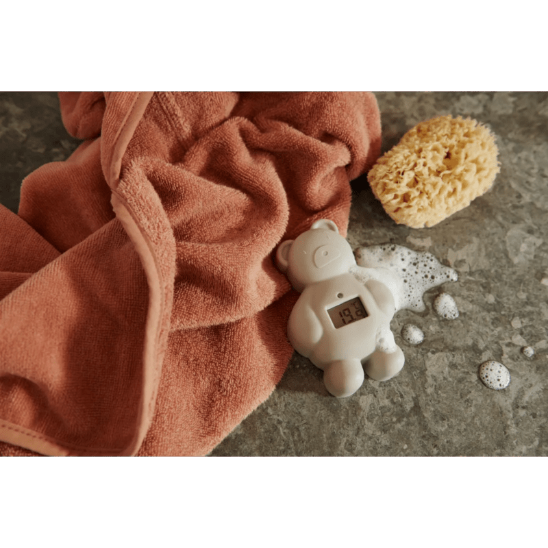 Auf Nummer sicher – mit dem digitalen Badethermometer von Liewood hast du die Wassertemperatur immer im Blick. Das niedliche Thermometer in Form eines Bärchen schwimmt auf dem Wasser, so dass die Temperatur während der Badezeit sichtbar ist.