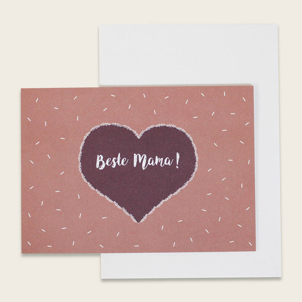 2.00 €Klappkarte „Beste Mama“ – Herz mit weissem Konfetti / Rosa