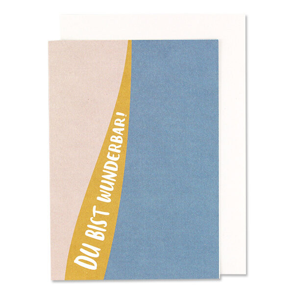 6.50 €Klappkarte mit Umschlag „Du bist Wunderbar“ – Wellen in Blau, Senf und Rosé