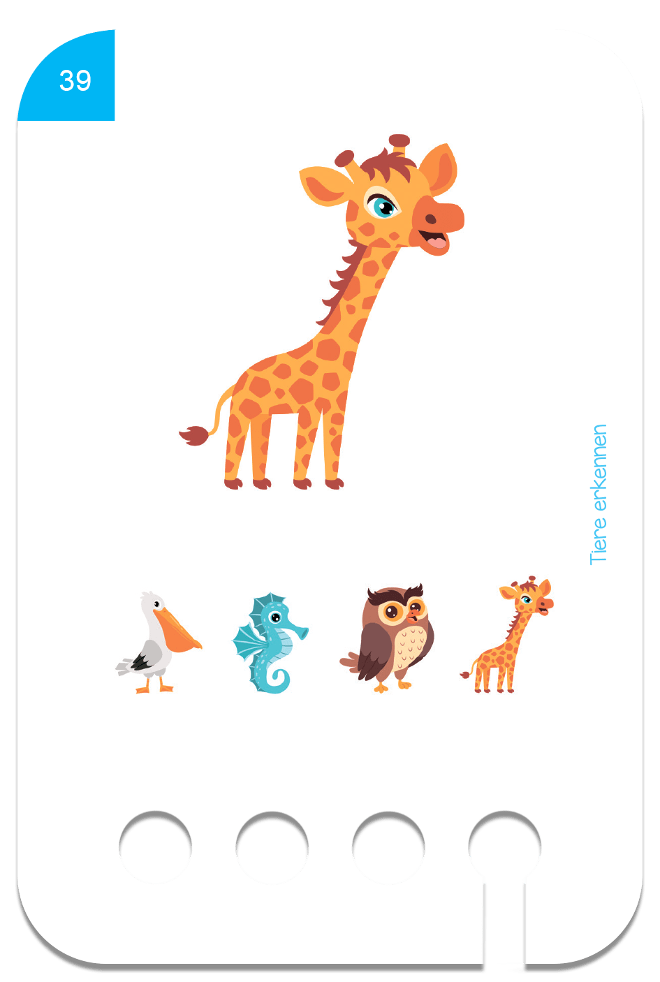 Kartensatz für den Lochkasten. Enthält 24 doppelseitig bedruckte Lernkarten mit insgesamt 48 Übungen. Für Kinder ab 2 Jahren geeignet.