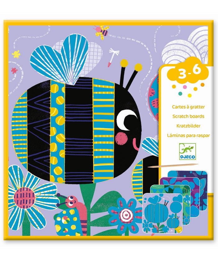 Mit dem Kreativ-Set ‚Käfer‘ von Djeco erhält du für deinen kleinen Künstlernachwuchs 4 Motivvorlagen mit verschiedenen bunten Käfern und Bienchen. Dazu gehört außerdem noch ein Kratzstift aus Holz. Mit ihm legen die Kids ab 3 Jahren die bunten Bilder frei. Perfekter Bastelspaß für trübe Tage!