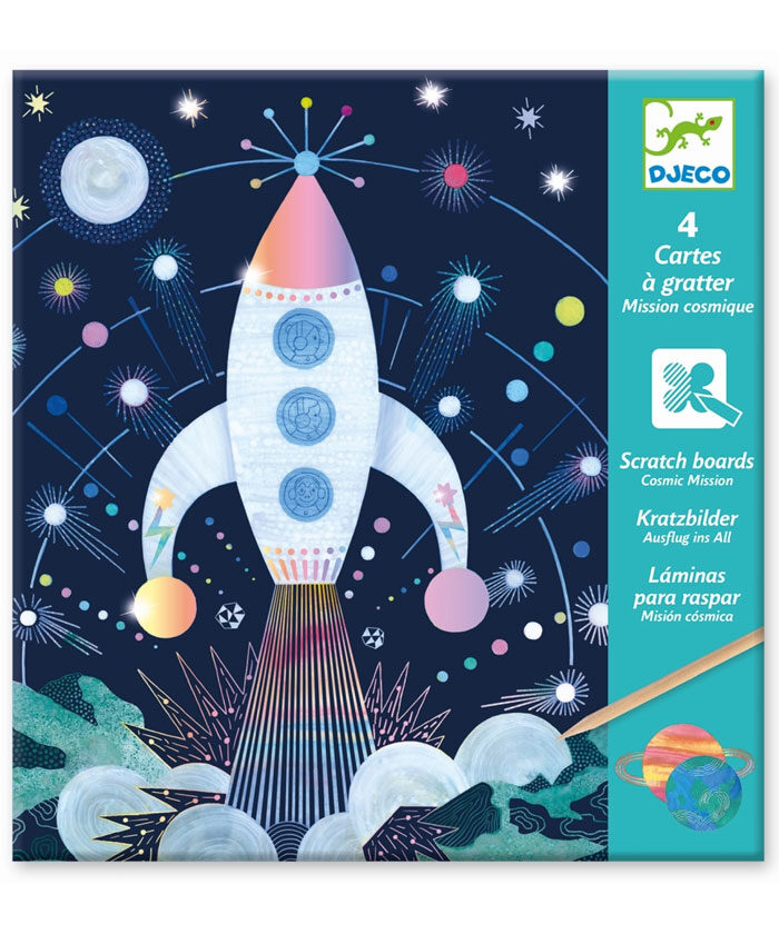 Kratzbilder „Weltall“. Das Set besteht aus 4 Kratzbildern, einem Kratzer und einer ausführlichen Schritt-für-Schritt-Anleitung. Die großen Motivkarten sind unter einer Schicht mit einem tollen Bild versehen.