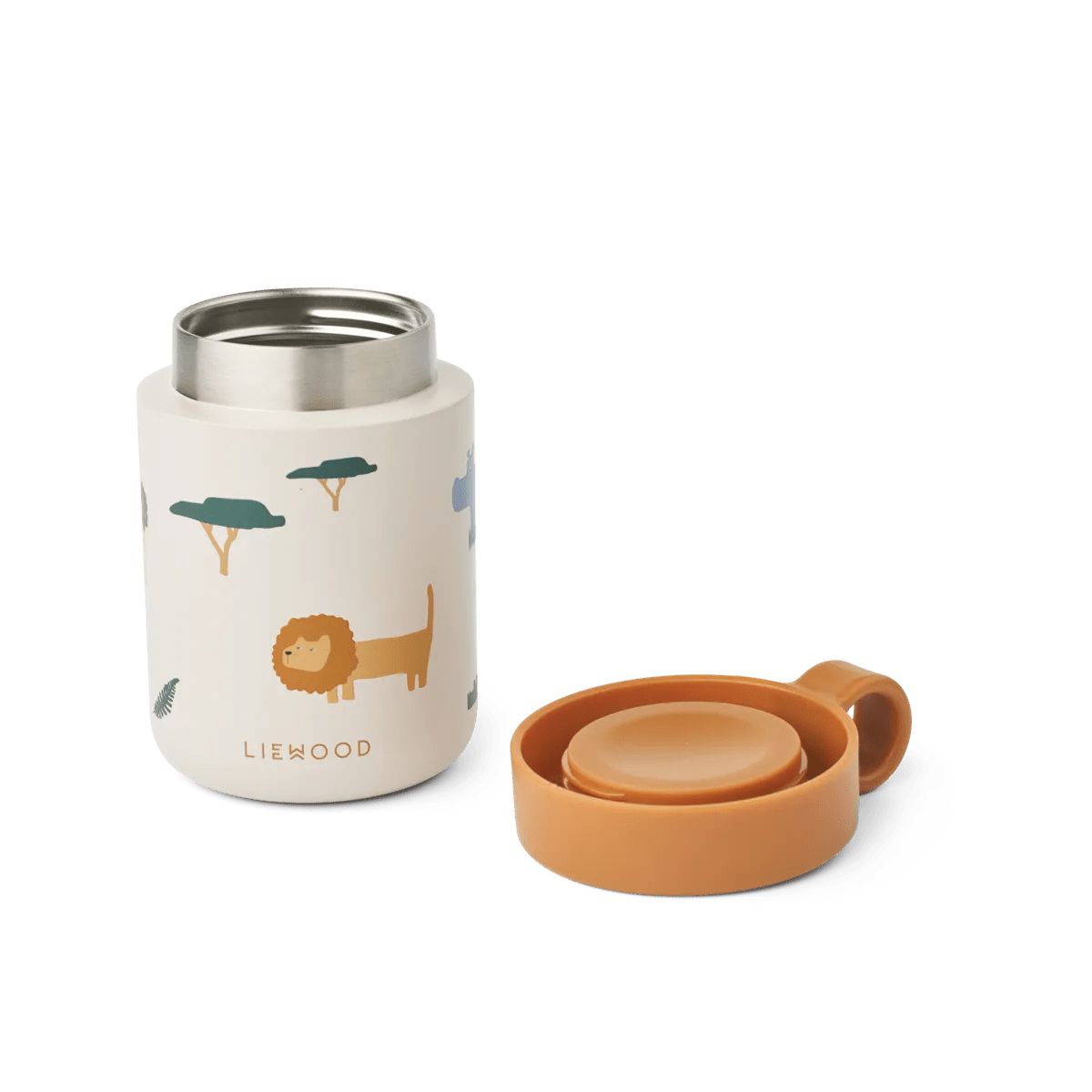 Mit seinen doppelten Wänden aus Edelstahl ist das Gefäß ideal für die Mitnahme von Brei oder Snacks unterwegs. Der auslaufsichere Stahldeckel mit Karabiner ermöglicht die Befestigung am Kinderwagen oder an der Tasche. Mit deinem praktischer ‚Kiani‘ Thermobecher von Liewood hat dein Getränk immer die perfekte Temperatur – ob warm oder kalt.