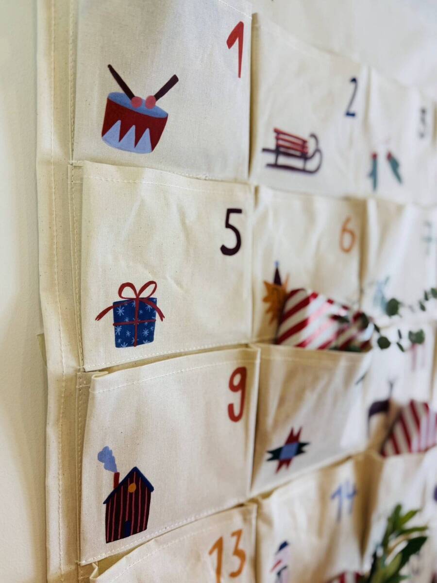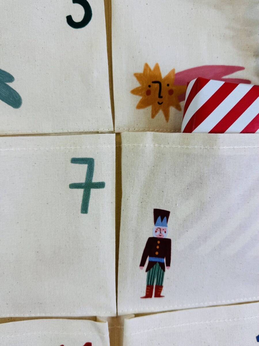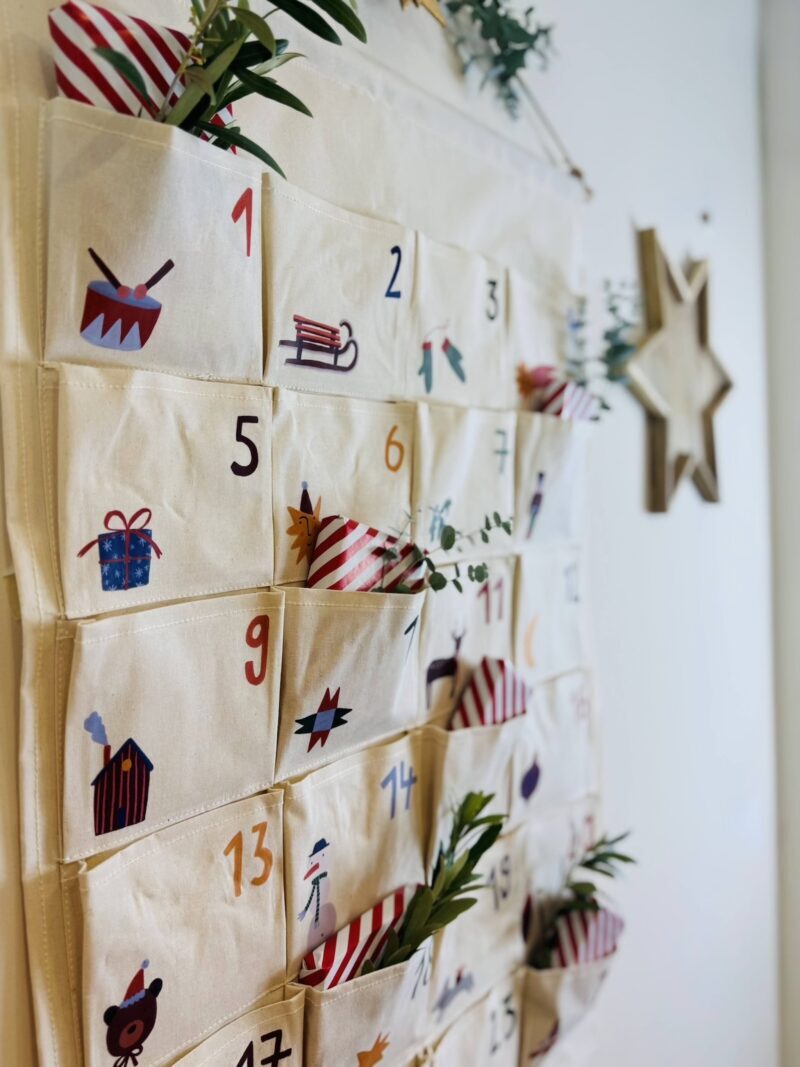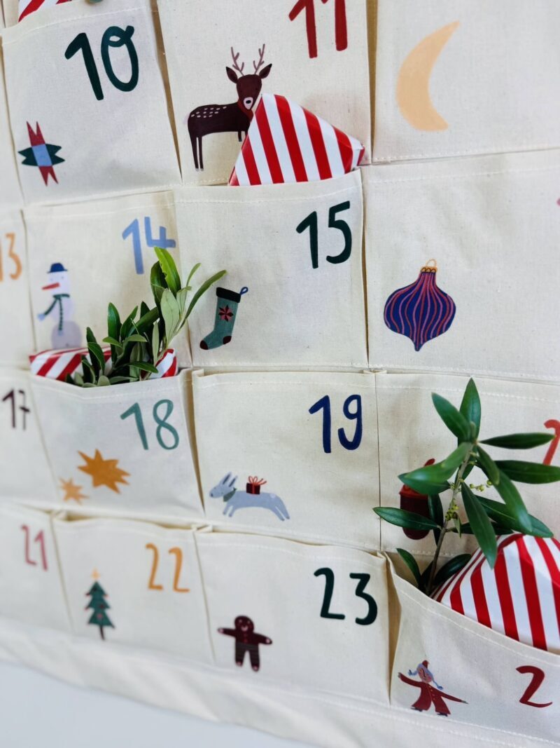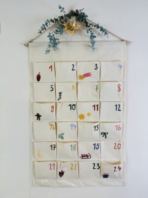 1 x personalisierter Canvas-Adventskalender mit 24 Taschen