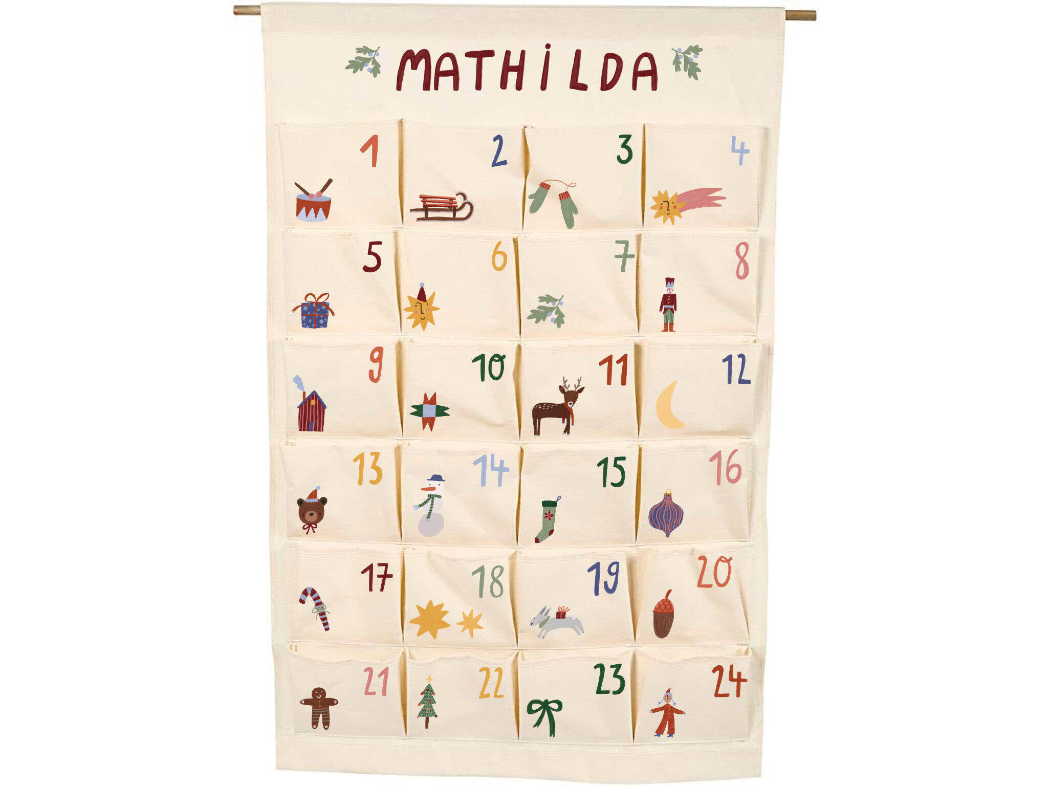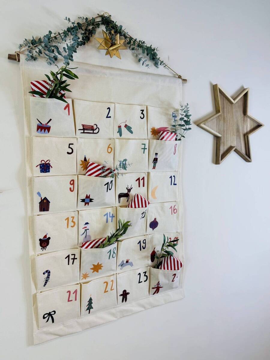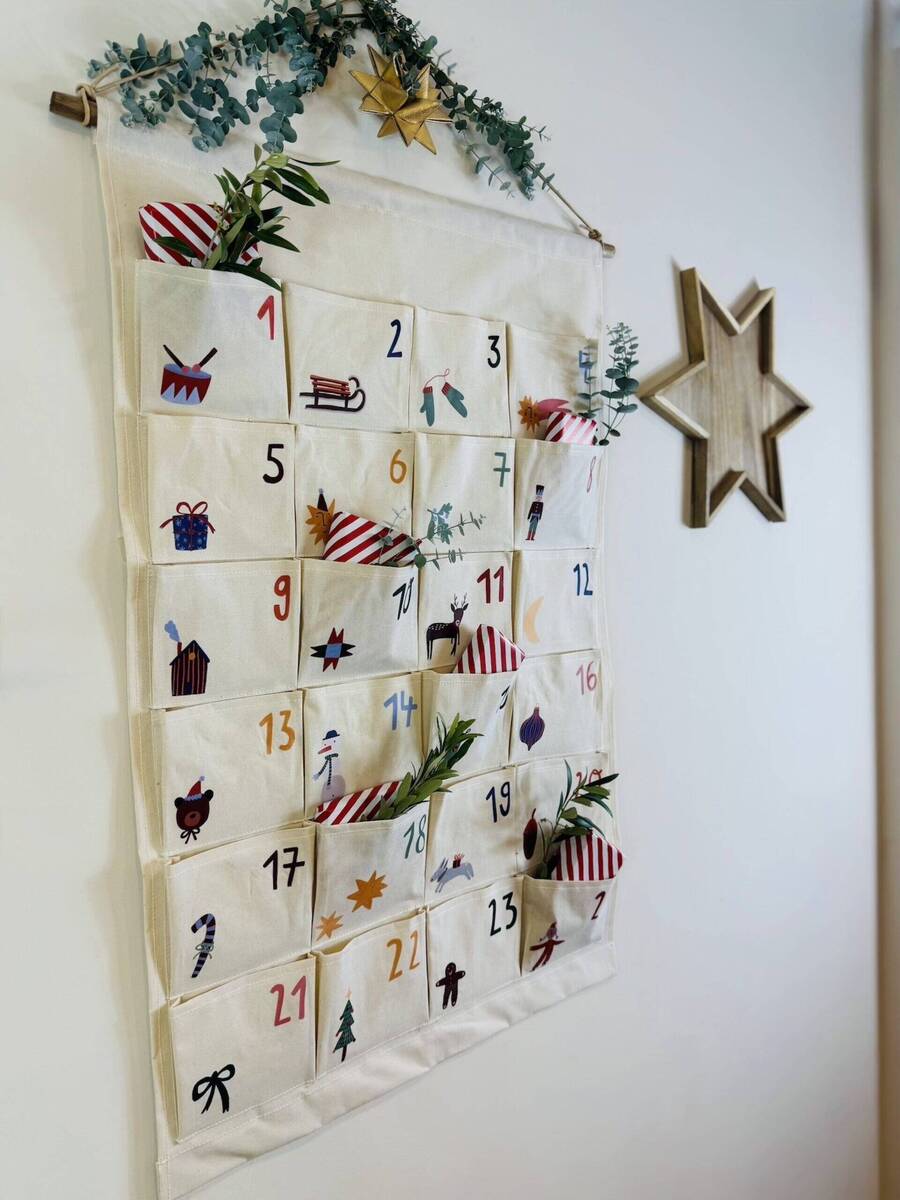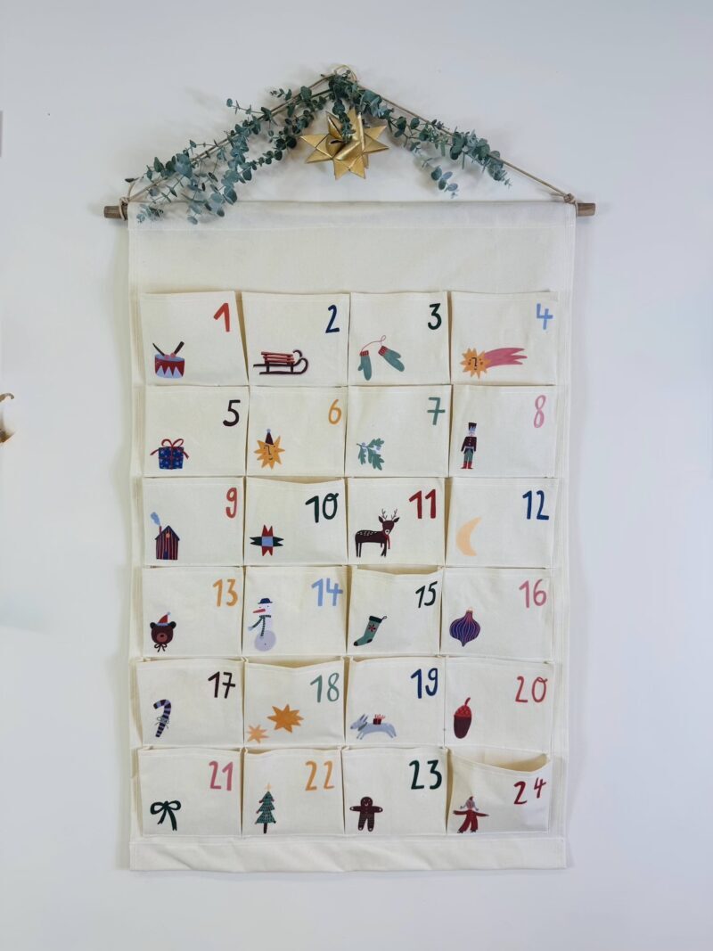 1 x personalisierter Canvas-Adventskalender mit 24 Taschen
