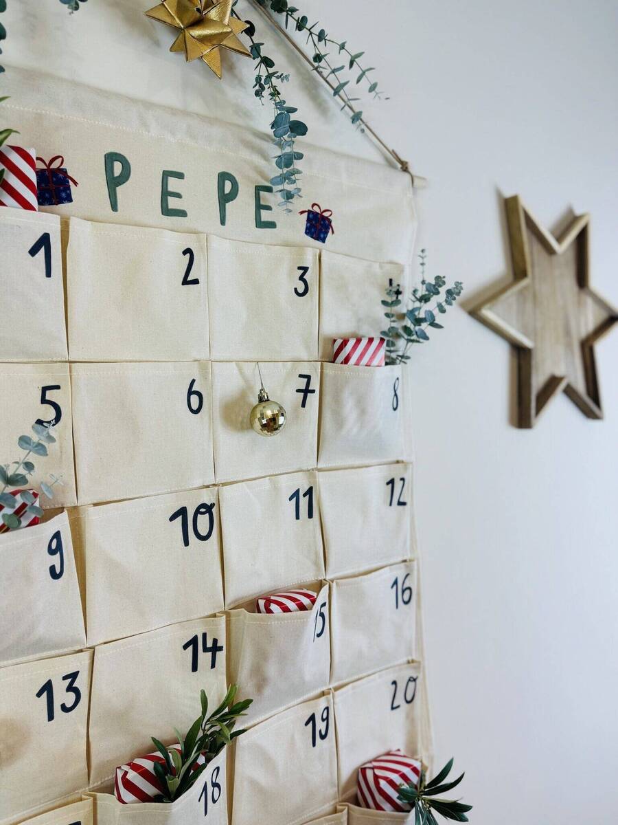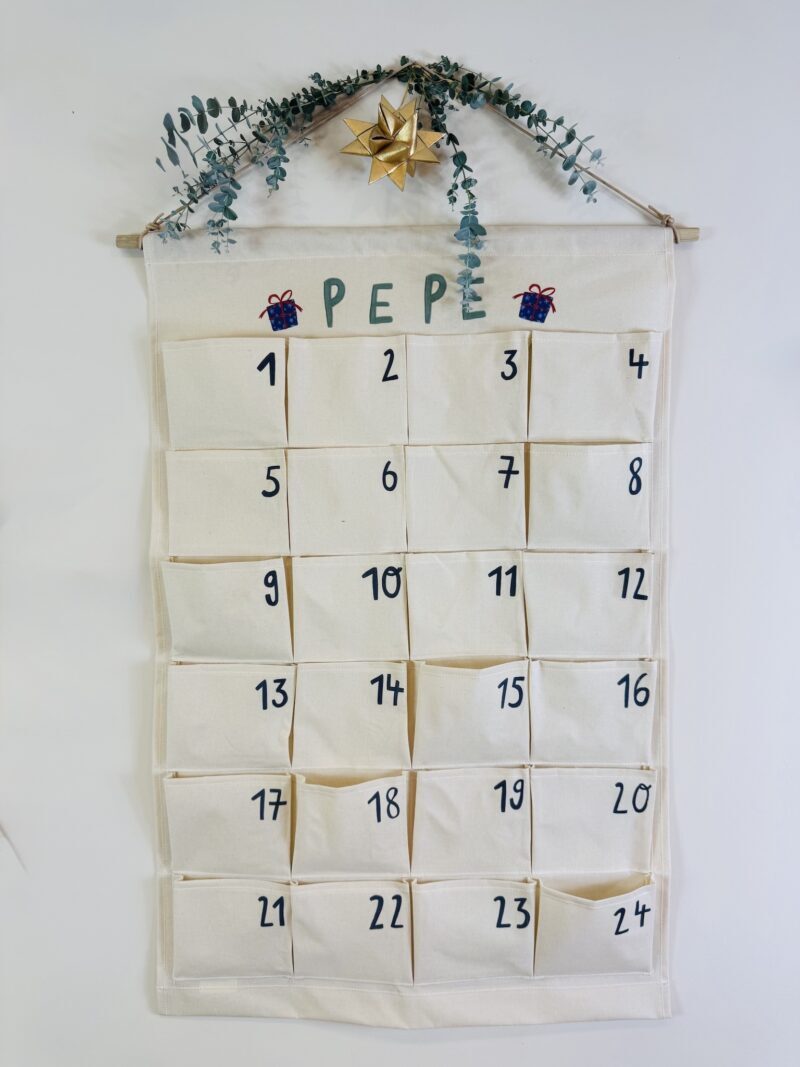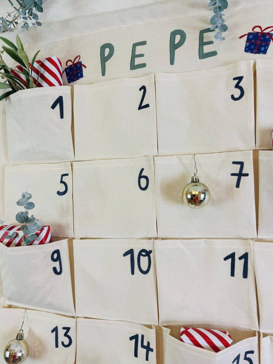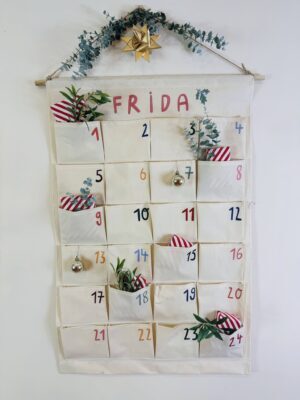 1 x personalisierter Canvas-Adventskalender mit 24 Taschen
