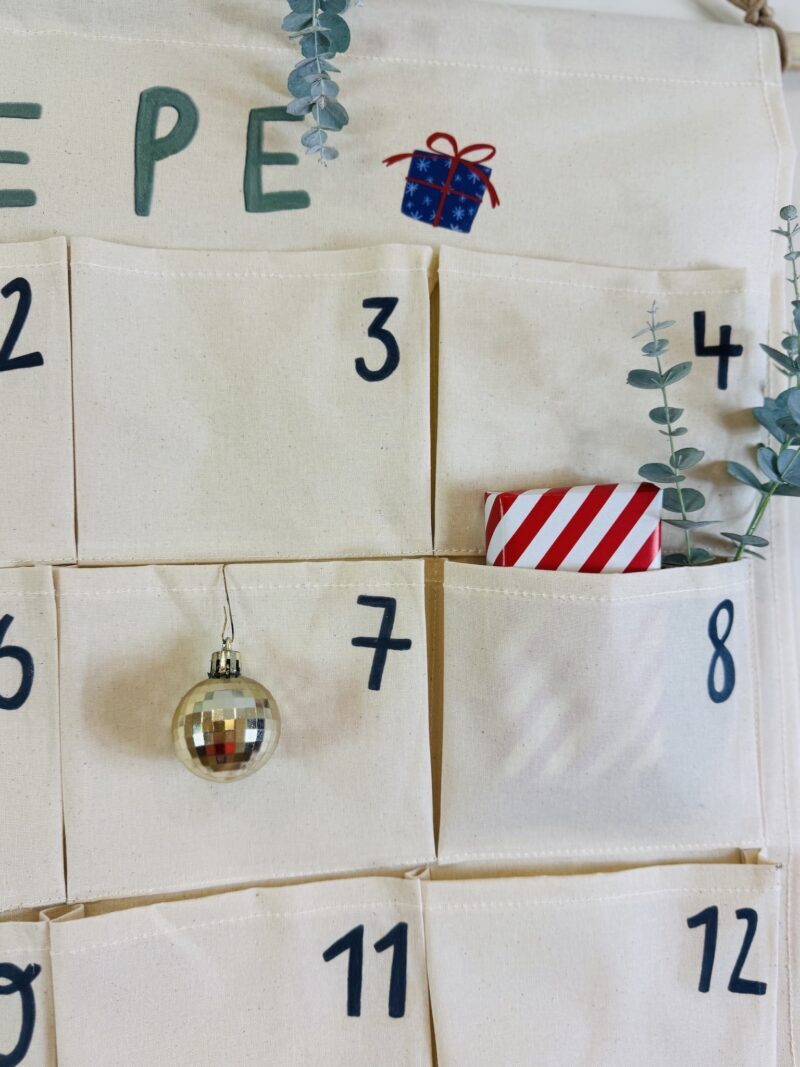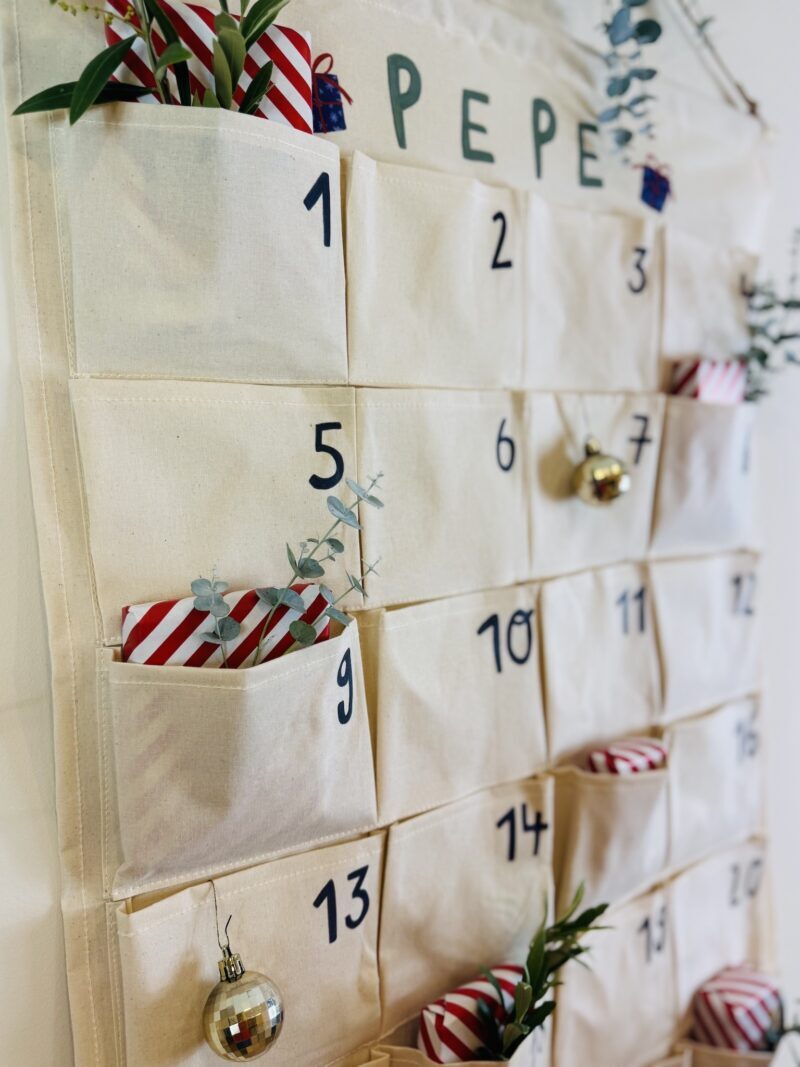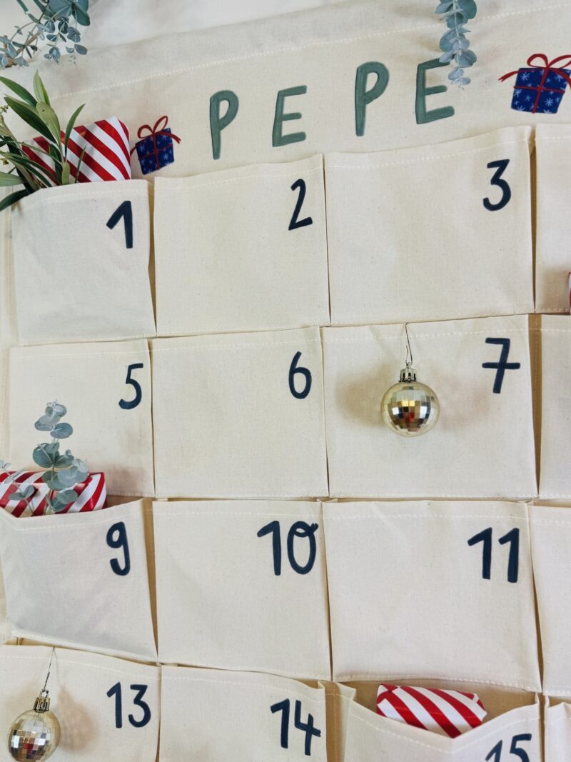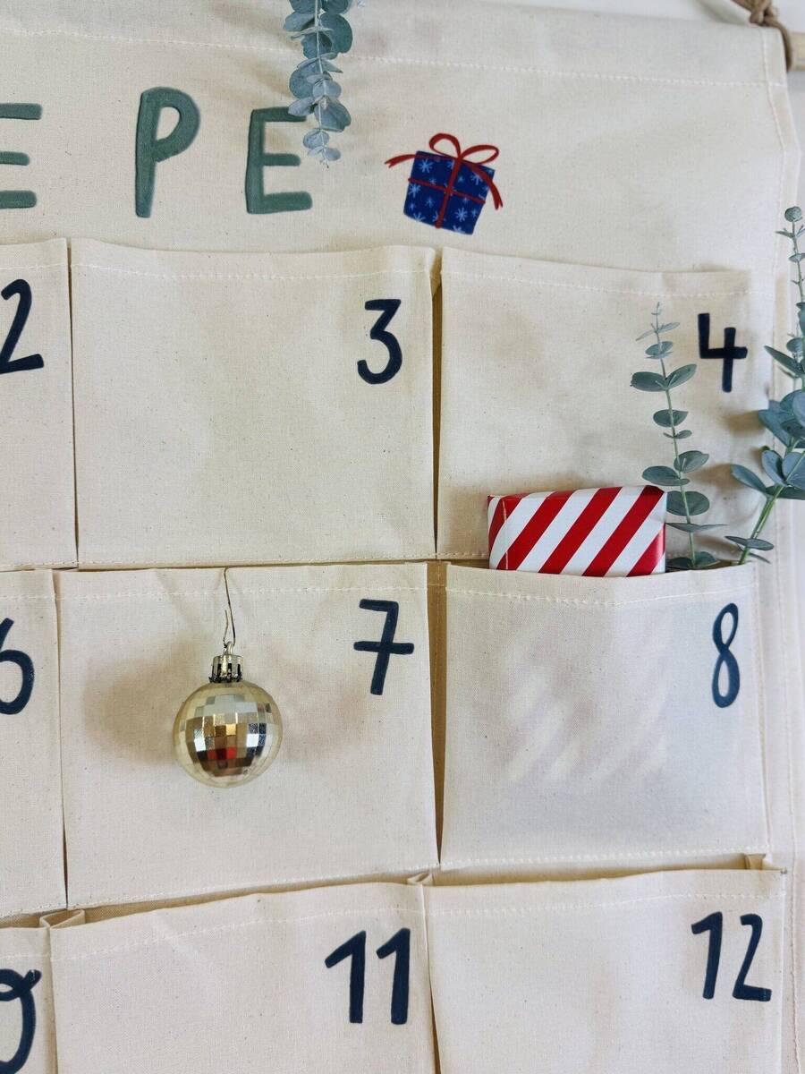 1 x personalisierter Canvas-Adventskalender mit 24 Taschen