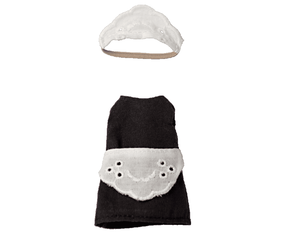 Sie eine Haushaltshilfe kann ein wahrer Schatz sein. Mit dem klassischen Set von Dienstmädchenkleidung, einschließlich eines Kleides mit Schürze und einem Haarband haben deine Mäuse immer eine treue, helfende Hand an ihrer Seite.