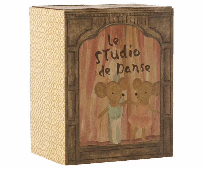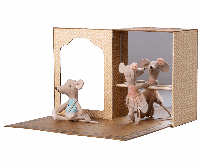 Öffne die Türen dieser magischen Box und erkunde eine Welt voller Tanz und Sternenstaub. Das Set enthält eine Pappschachtel, die sowohl ein Tanzstudio als auch ein gemütliches Mäusehaus ist, sowie zwei Mäuse, die für stundenlangen Tanz bereit sind.