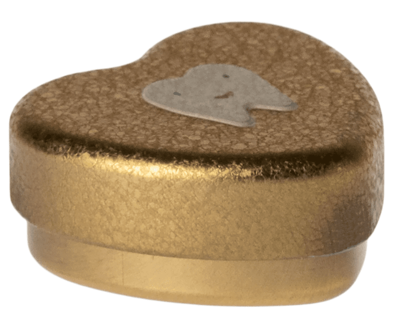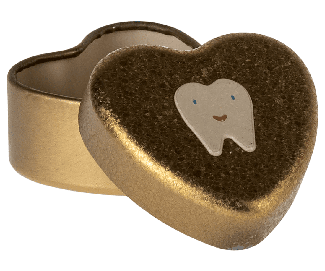 Das kleine, goldene Döschen von Maileg ist der perfekte Ort, um kleine Milchzähne zu retten. Mit der niedlichen Metalldose in Herzform werden Kindheitserinnerungen sicher verwahrt.