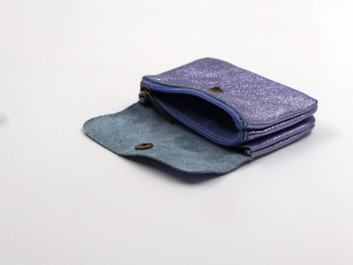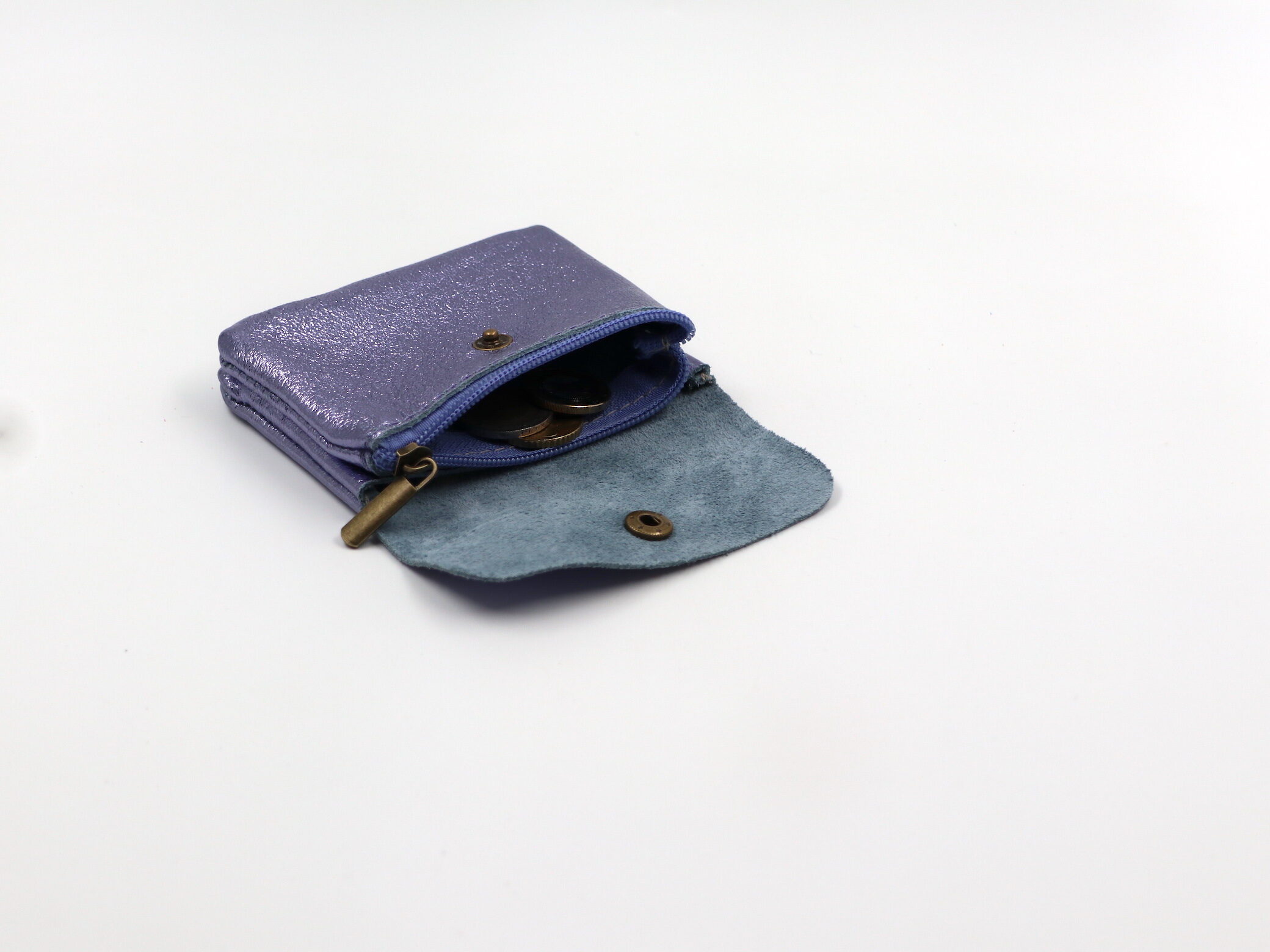 Das Leder-Portemonnaie hat eine Klappe mit Druckknopf und zwei Faltenbälge. Davon einer mit Reißverschluss – perfekt für ein paar Münzen.