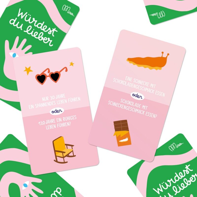 25 Karten = 25 absurde Diskussionen – egal, ob ihr nur ein paar Minuten oder ein paar Stunden Zeit habt.