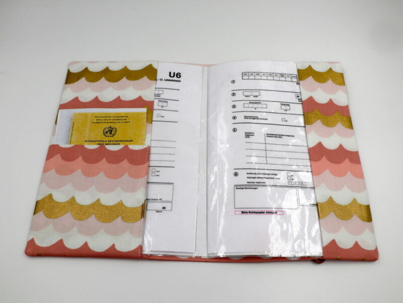 Mit dieser Mutterpasshülle bleibt der Mutterpass immer gut geschützt und ist dazu noch ein hübscher Begleiter für unterwegs. Es ist genügend Platz für Überweisungen, Ultraschallbilder und andere wichtige Unterlagen. Für 5 EUR kann der Name mit Holzwürfeln auf das Verschlussband gezogen werden.