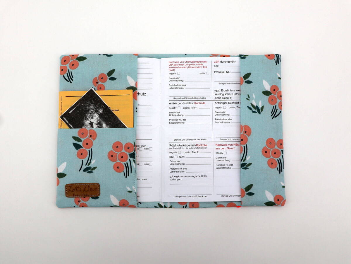 Mit dieser Mutterpasshülle bleibt der Mutterpass immer gut geschützt und ist dazu noch ein hübscher Begleiter für unterwegs. Es ist genügend Platz für Überweisungen, Ultraschallbilder und andere wichtige Unterlagen. Für 5 EUR kann der Name mit Holzwürfeln auf das Verschlussband gezogen werden.