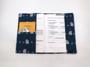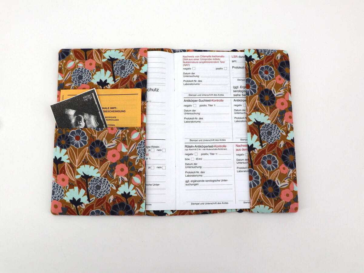 Mit dieser Mutterpasshülle bleibt der Mutterpass immer gut geschützt und ist dazu noch ein hübscher Begleiter für unterwegs. Es ist genügend Platz für Überweisungen, Ultraschallbilder und andere wichtige Unterlagen. Für 5 EUR kann der Name mit Holzwürfeln auf das Verschlussband gezogen werden.