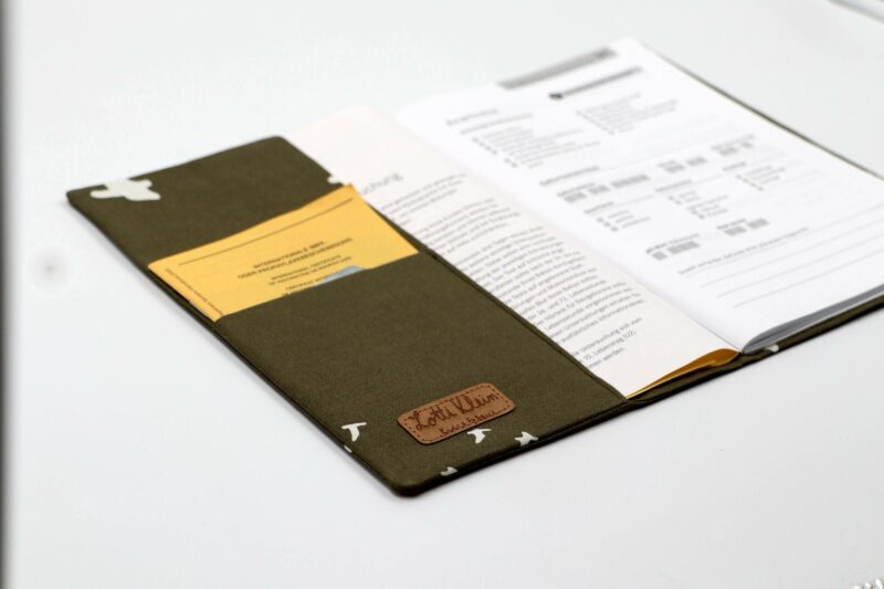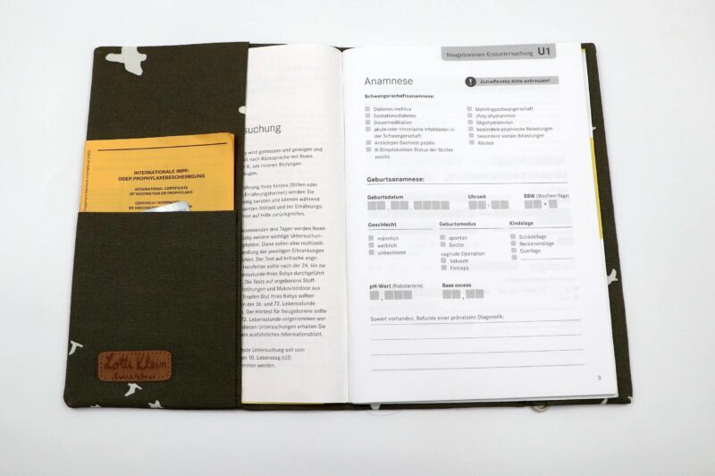 Mit dieser U-Heft Hülle bleibt das U-Heft immer gut geschützt und ist dazu noch ein hübscher Begleiter für unterwegs. Für 5 EUR kann ein Name mit Holzwürfeln auf das Verschlussband gezogen werden.