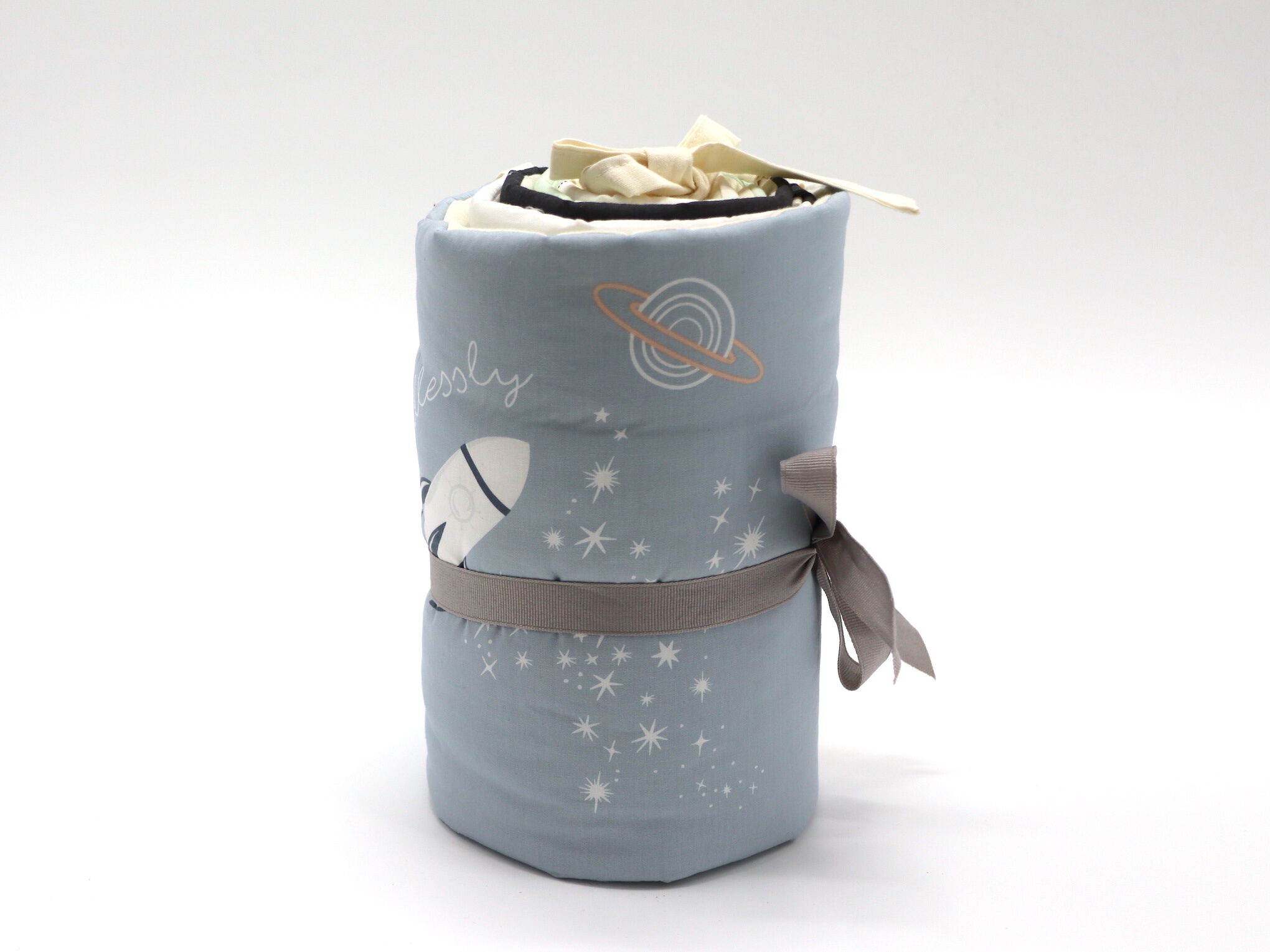 Das Nestchen wird aus Baumwollstoff genäht für jedes Babybett passend genäht und schützt Euer Baby rundherum.
