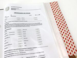 Je nach Zuschnitte kann das Motiv auf der Zeugnismappe etwas variieren.