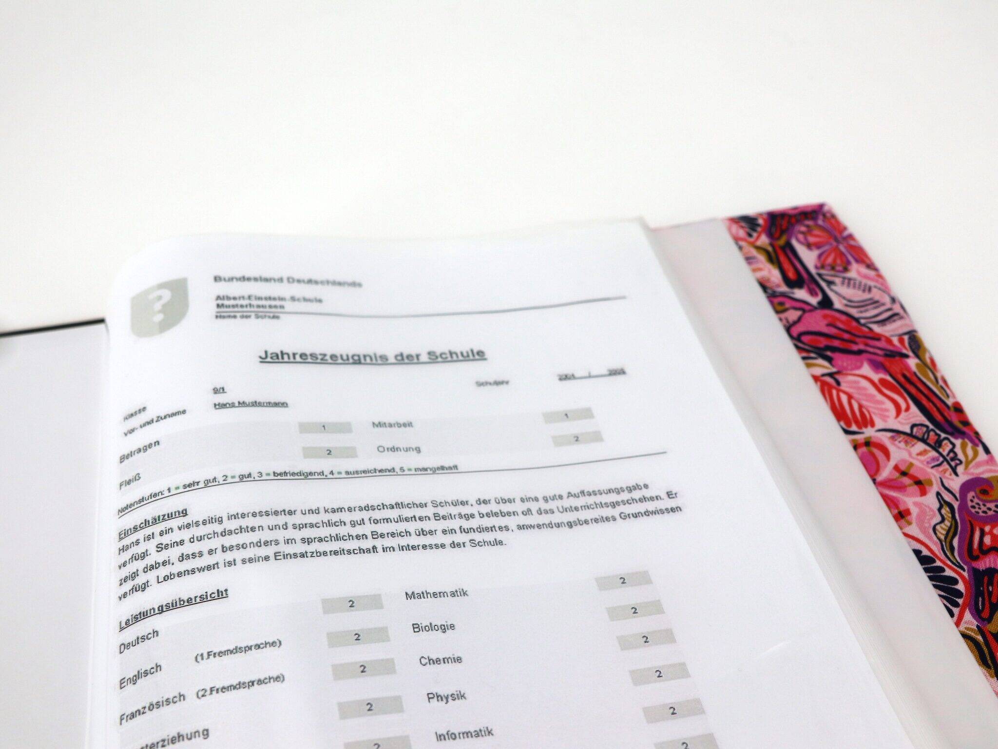 Je nach Zuschnitte kann das Motiv auf der Zeugnismappe etwas variieren.