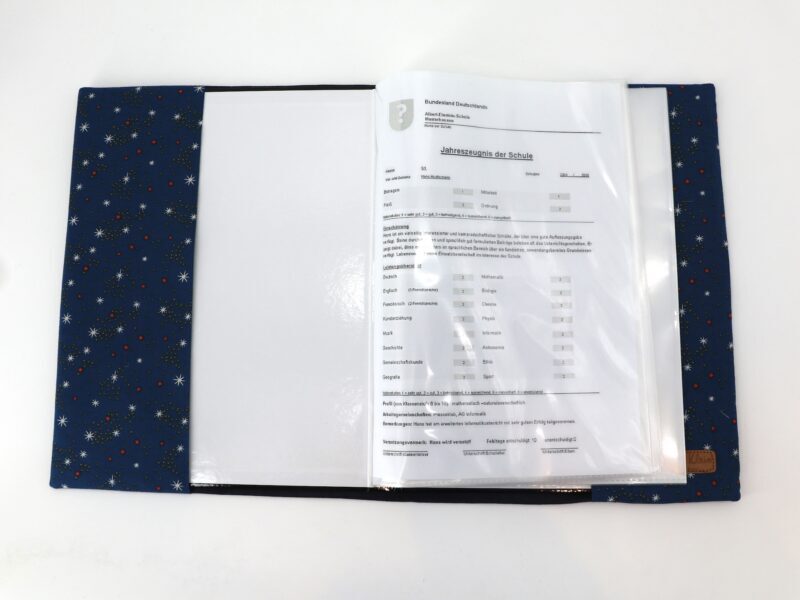 Unsere Zeugnismappen kommen mit einem Sichtbuch im A4-Format. Das Sichtbuch enthält 30 Folien. So sind Zeugnisse, Urkunden, Notenblätter oder die gesammelten Kunstwerke Deines Kindes bestens aufgehoben und können dank des einzigartigen Einbandes noch ein wenig stolzer präsentiert werden!