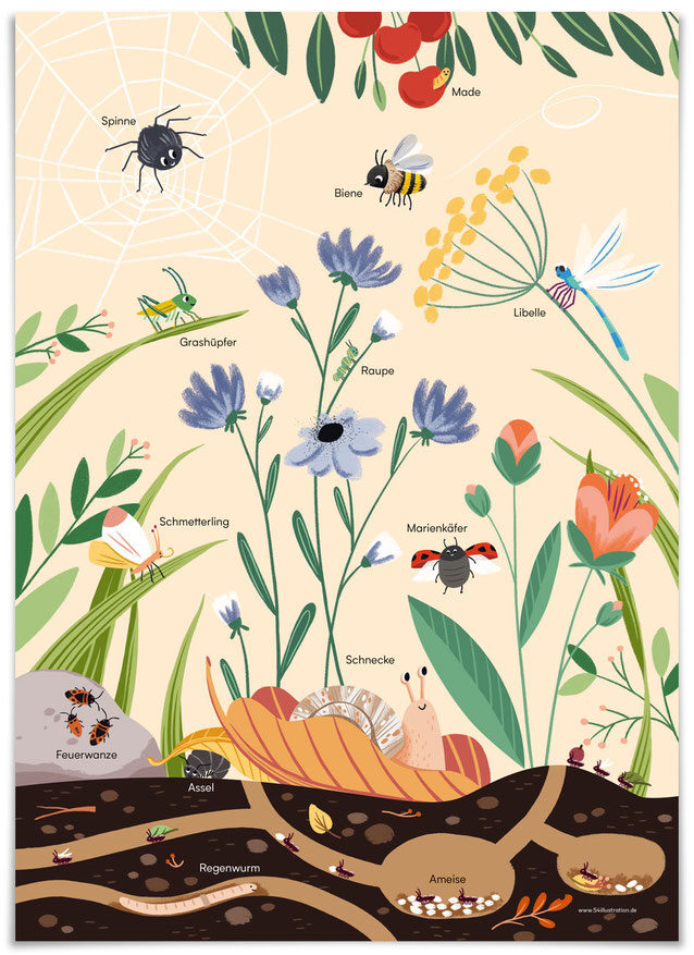 Das Wimmel-Poster „Erde und Wiese“ verspricht großen Such- und Entdeckerspaß. Die Kleinen lernen auf spielerische Weise kleinste Lebewesen unter, über und auf der Wiese kennen. Das Poster passt auch ganz wunderbar zu unseren Gartenfreunde-Büchern. Dort finden sich viele der kleinen Wimmeltiere wieder.