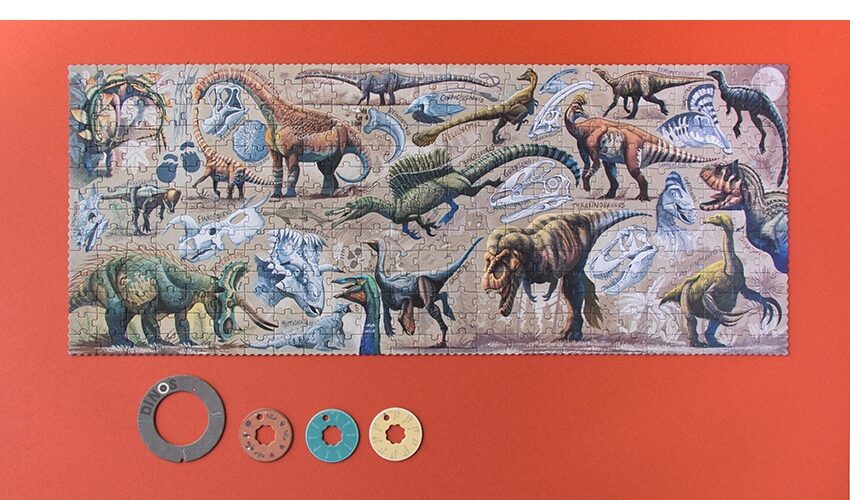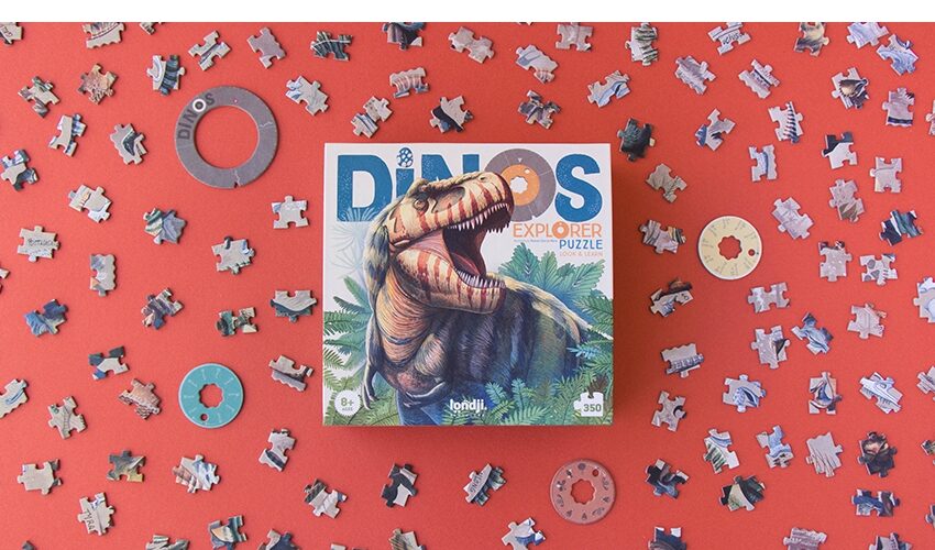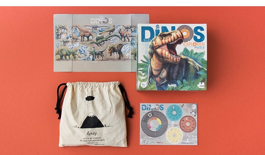 Du liebst Dinosaurier? Dann ist das was für dich! Brontosaurus, Tyrannosaurus, Velociraptor, Gallimimus… ein Puzzle von Londji für Dinosaurierliebhaber. Wenn du die Aufgabe gelöst hast, erfährst du mehr über die einzelnen Arten – wovon sie sich ernährten, wann sie lebten, wie lang und wie groß sie waren. Das Puzzle wird durch Räder aus Pappe ergänzt, die, sobald sie auf den Dinosaurier aufgesetzt werden, es ermöglichen, für einen Tag zum Paläontologen zu werden und mehr Informationen über jedes der Exemplare zu entdecken.