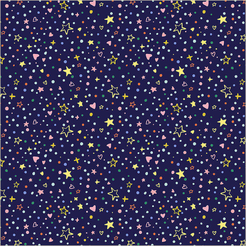 Der Rainbow Vale – Confetti Sparkle Midnight begeistert mit seinem ansprechenden Motiv und eignet sich hervorragend für Kinderkleidung, Schultüten, Taschen, Quilts und kreative Nähprojekte aller Art. Das leichte, glatte Gewebe lässt sich einfach zuschneiden, nähen und bügeln.