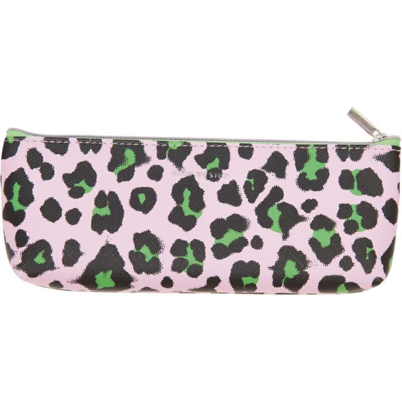 Das Etui im bunten Flecken-Design mit Neon-Akzenten, farblich passendem Reißverschluss und silberner Prägung bringt Ordnung ins Alltagschaos.