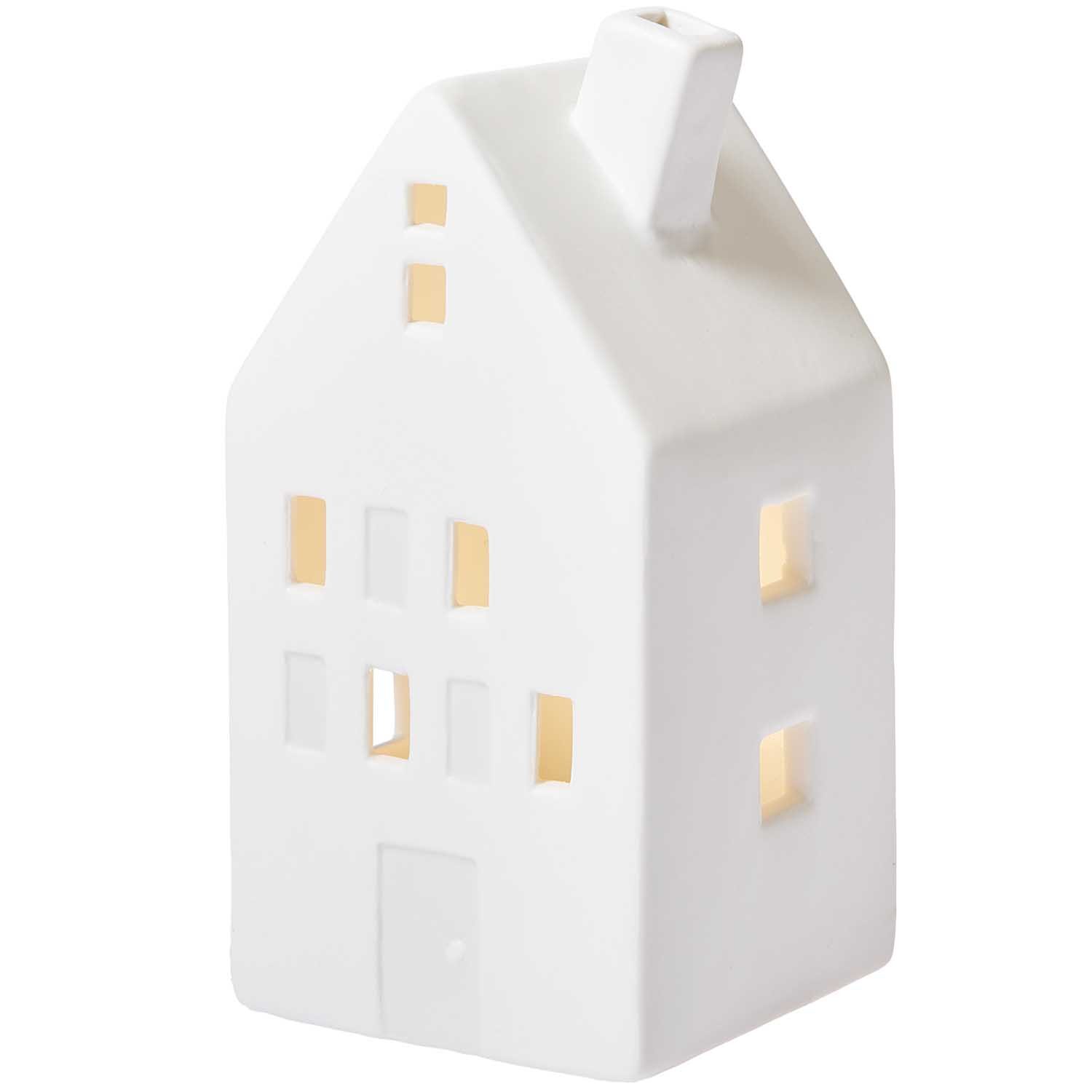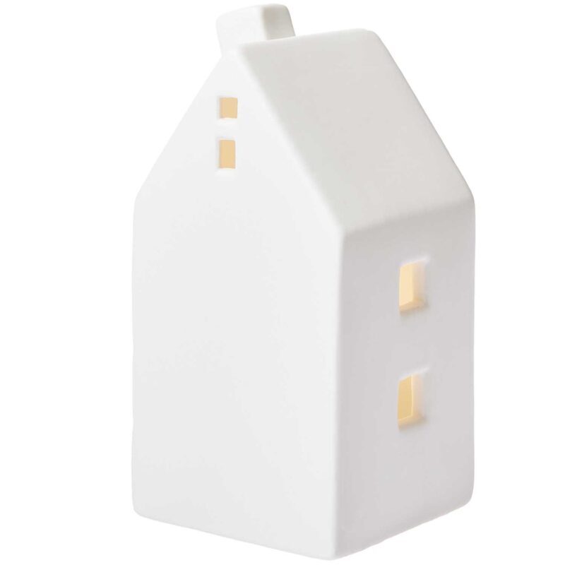 Dank der integrierten LED im Innenraum des weißen Hauses strahlt es ein sanftes, gemütliches Licht aus. Ob auf dem Tisch, im Regal oder auf der Fensterbank – dieses charmante Porzellanhaus setzt überall festliche Akzente.