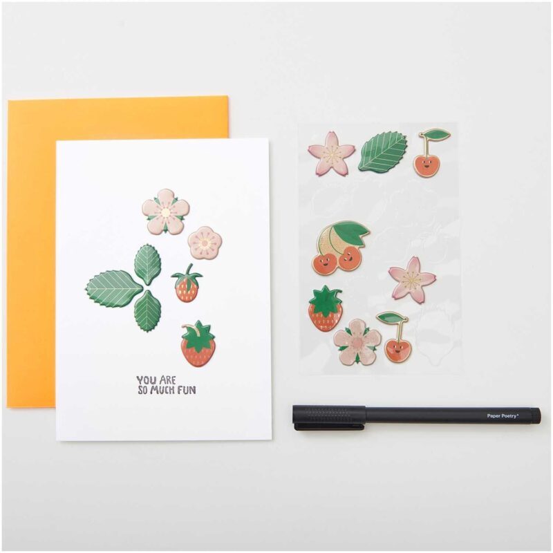 Gestalten Sie mit den 3D-Stickern individuelle Karten oder verzieren Sie Ihr Bullet Journal, Fotoalben, Geschenkverpackungen und mehr. Die hochwertig verarbeiteten Sticker sind mit holografischen Details veredelt und sind durch den 3D-Effekt etwas ganz Besonderes. Die Motive reichen zarten Blüten bis saftig frischen Früchten und verleihen Ihren Kreationen eine frühlingshafte Note.