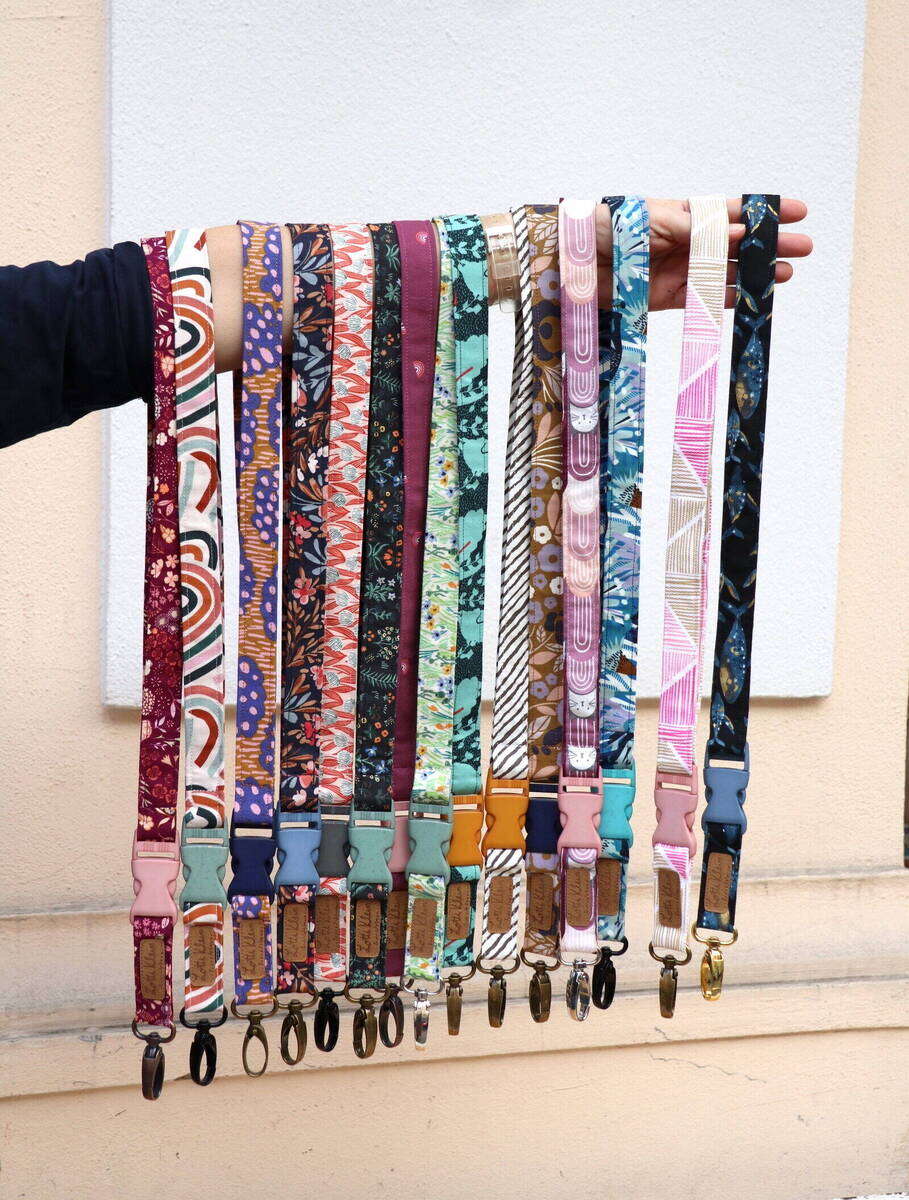 Ob ganz schlicht in Uni aus Denim, einem unser tollen Cotton Twills, Canvas oder die vielen gemusterten Baumwollstoffe – suche dir dein Lieblingsdesign aus und schon bald hast du daraus dein individuelles Schlüsselband.