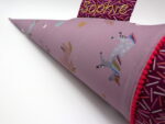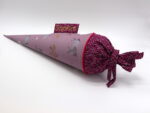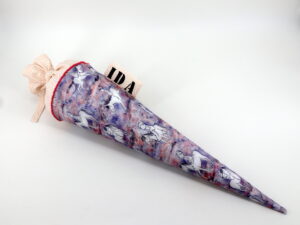 Die Schultüte wird aus hochwertigen Designerstoffen genäht und auf Wunsch mit dem Namen des Schulkindes individualisiert. Die Tüte ist 70cm hoch und wird mit einem entsprechenden Papprohling geliefert. Um eine bleibende Erinnerung an den Einschulungstag zu haben, kann nach der Einschulung der Papprohling aus der Schultüte entfernt werden und und mit dem Inlet als Kuschelkissen Einzug in das Kinderzimmer halten.