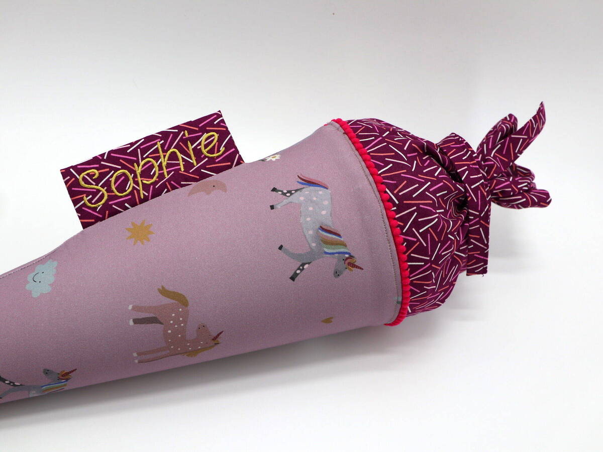 Schultüte „Einhörner – Gretas Schwester“ mit Namen