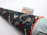 Die Schultüte wird aus hochwertigen Designerstoffen genäht und auf Wunsch mit dem Namen des Schulkindes individualisiert. Die Tüte ist 70cm hoch und wird mit einem entsprechenden Papprohling geliefert. Um eine bleibende Erinnerung an den Einschulungstag zu haben, kann nach der Einschulung der Papprohling aus der Schultüte entfernt werden und und mit dem Inlet als Kuschelkissen Einzug in das Kinderzimmer halten.