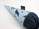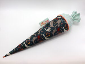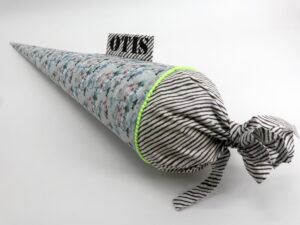 Die Schultüte wird aus hochwertigen Designerstoffen genäht und auf Wunsch mit dem Namen des Schulkindes individualisiert. Die Tüte ist 70cm hoch und wird mit einem entsprechenden Papprohling geliefert. Um eine bleibende Erinnerung an den Einschulungstag zu haben, kann nach der Einschulung der Papprohling aus der Schultüte entfernt werden und und mit dem Inlet als Kuschelkissen Einzug in das Kinderzimmer halten.